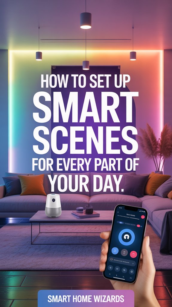 You’ll set up smart scenes by opening your control app (eWeLink, SmartThings, or Smart Life), accessing the scenes interface, and selecting the plus icon to create new automations. Configure your “If” triggers using time, sunrise, or device states, then set “Then” actions that control multiple devices simultaneously—adjusting lights, thermostats, and switches in coordinated sequences. Name each scene distinctively and test execution to verify all devices respond correctly. The configuration process follows standardized protocols across platforms, and mastering trigger prioritization with proper timing offsets will eliminate conflicts in your automated environment.