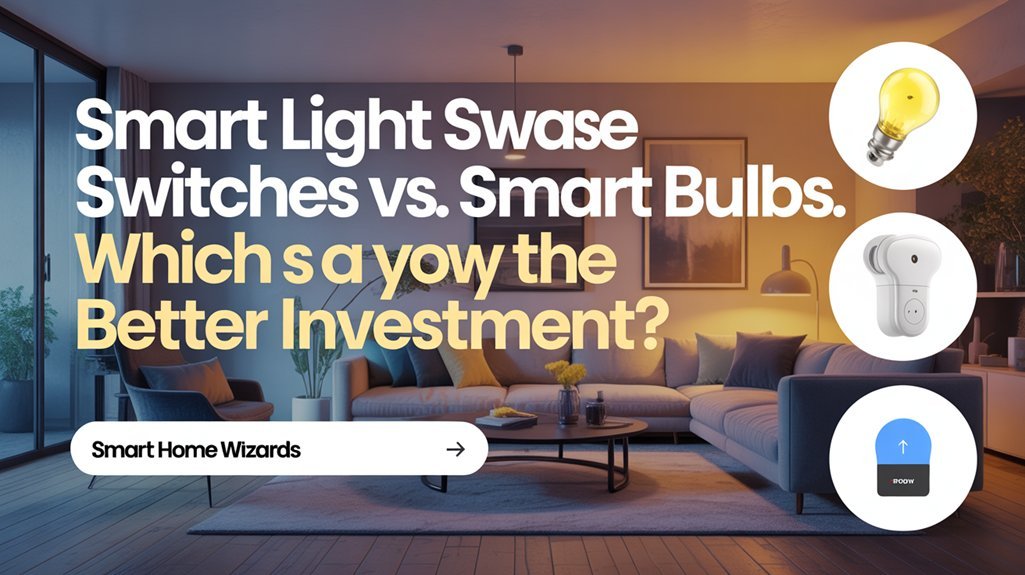 You’ll want smart switches for cost comparison advantages and system-wide control—they’re more economical long-term since you won’t replace multiple bulbs.