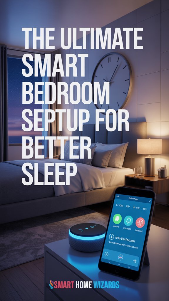 For environmental controls, implement Smart Wings automated shades that synchronize with your wake time, delivering circadian-appropriate smart lighting while their slow-close mechanism guarantees noise reduction during sleep cycles.